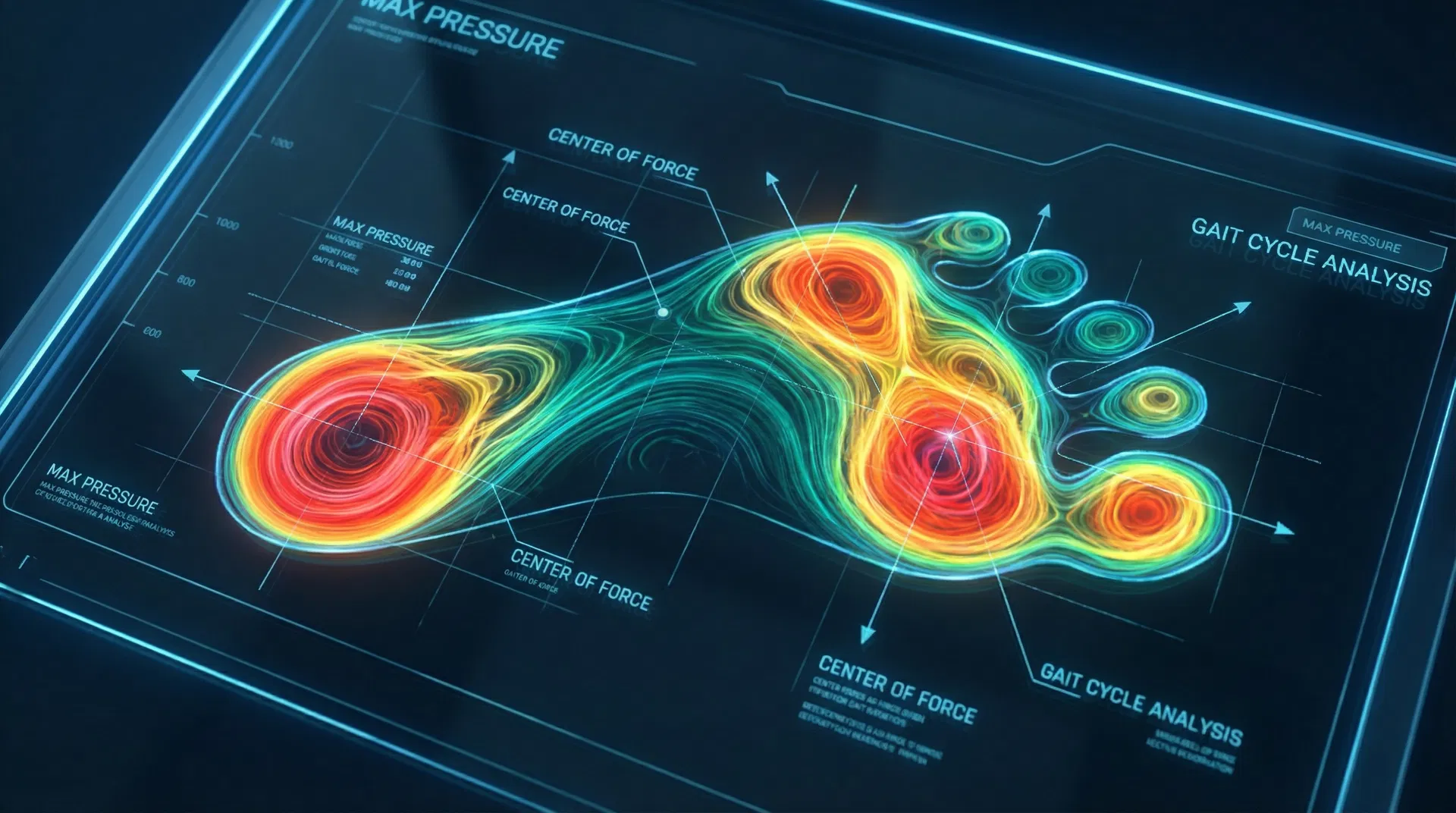 Consulta inicial com análise detalhada da postura, pisada e biomecânica utilizando tecnologia BaroScan.